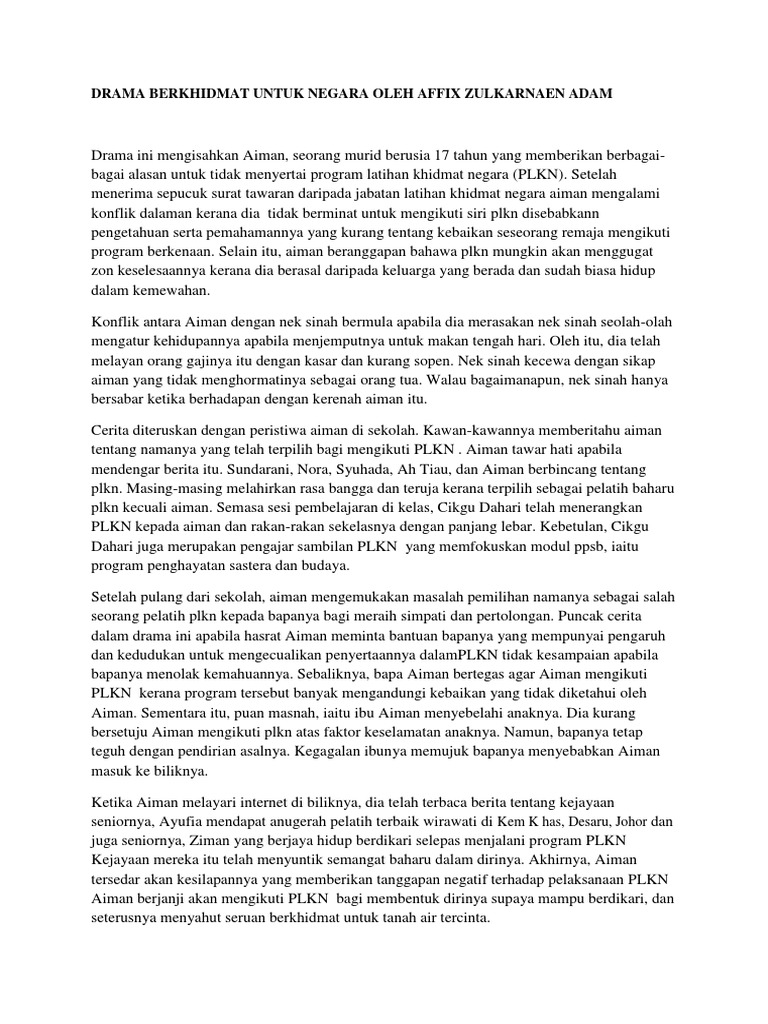 Drama Berkhidmat Untuk Negara Oleh Affix Zulkarnaen Adam Pdf