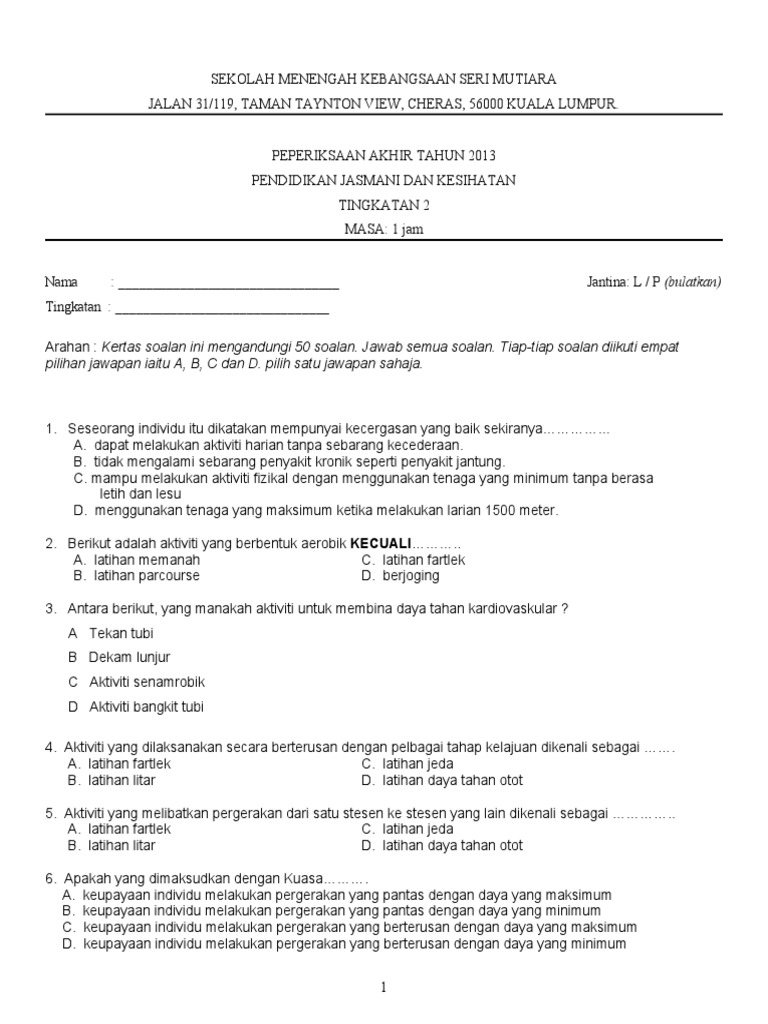 Kali ini admin kongsikan soalan peperiksaan bagi. Peperiksaan Akhir Tahun Pjk Tingkatan 2. Search inside document.